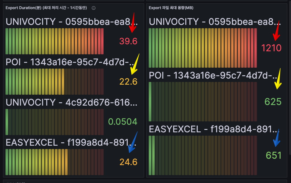 → Apache POI는 용량은 적지만 처리량이 상대적으로 부족해 결국 시간 지연