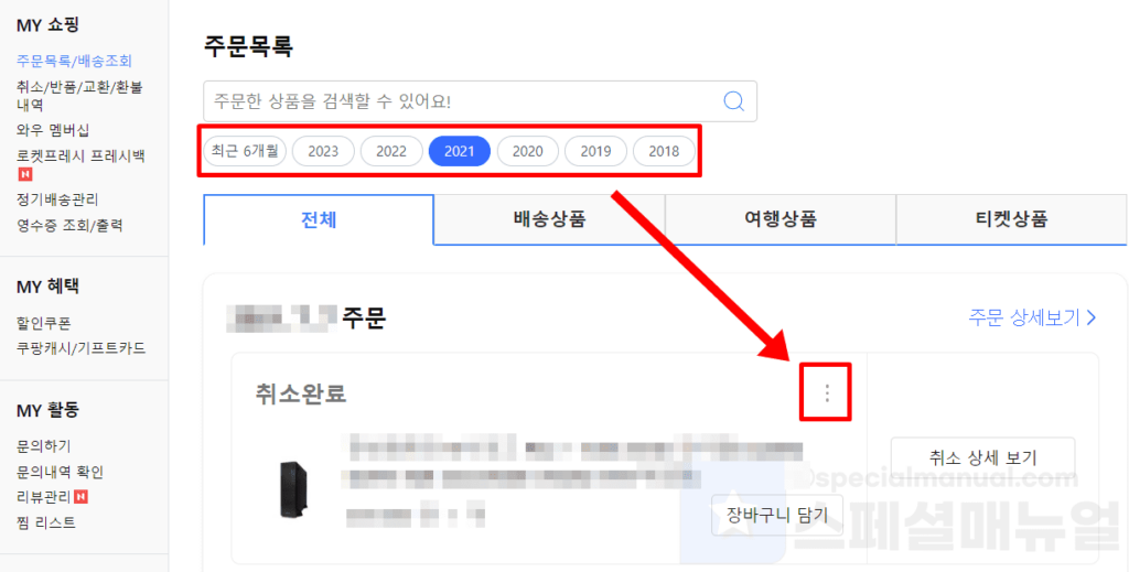 쿠팡의 주문목록 페이지를 한번 봐보겠다.